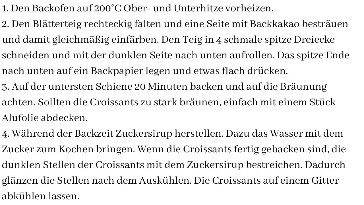 | Zutaten | für 4 große Croissants |