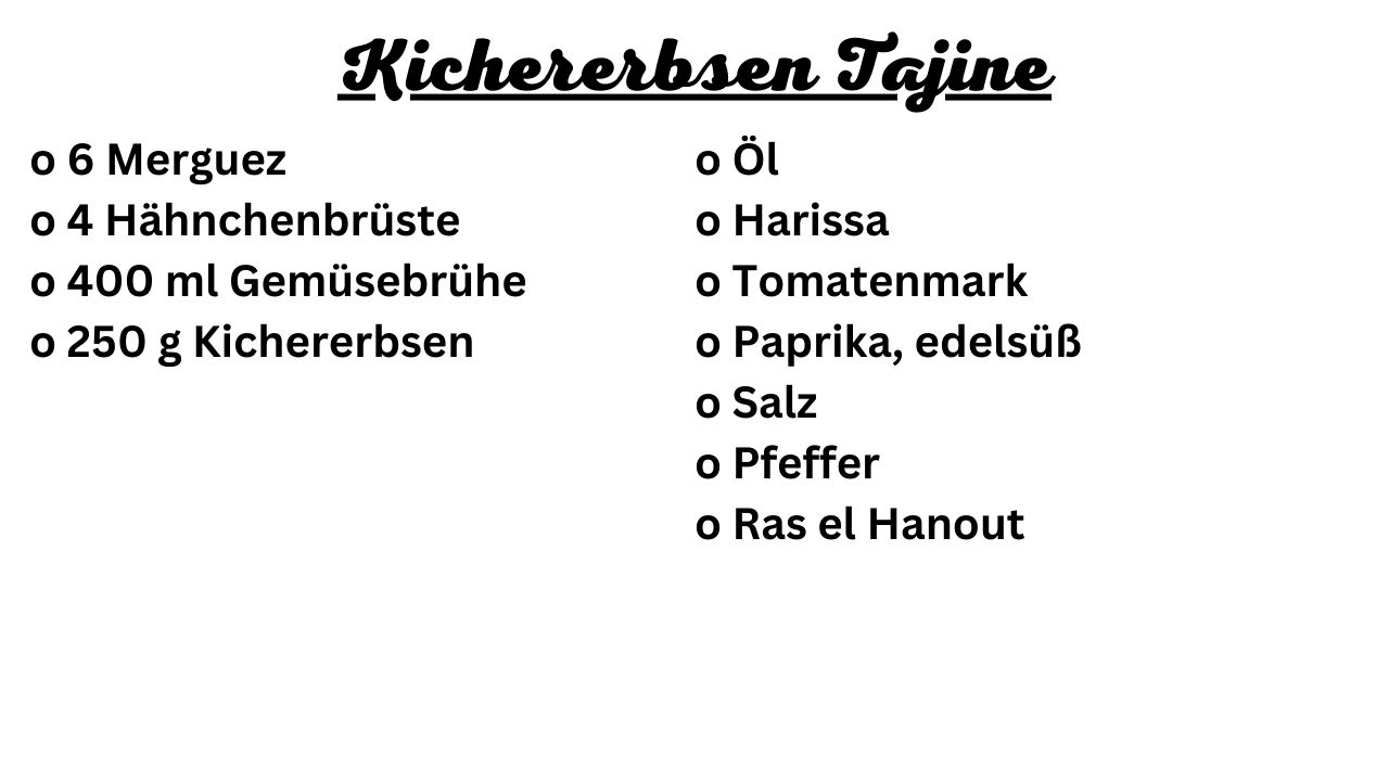 4. Put the chickpeas in the tagine and pour the sauce over them. Add the merguez, prick the merguez with a knife and place the chicken breasts on top. Close the tagine and bake in the preheated oven for 25 minutes.