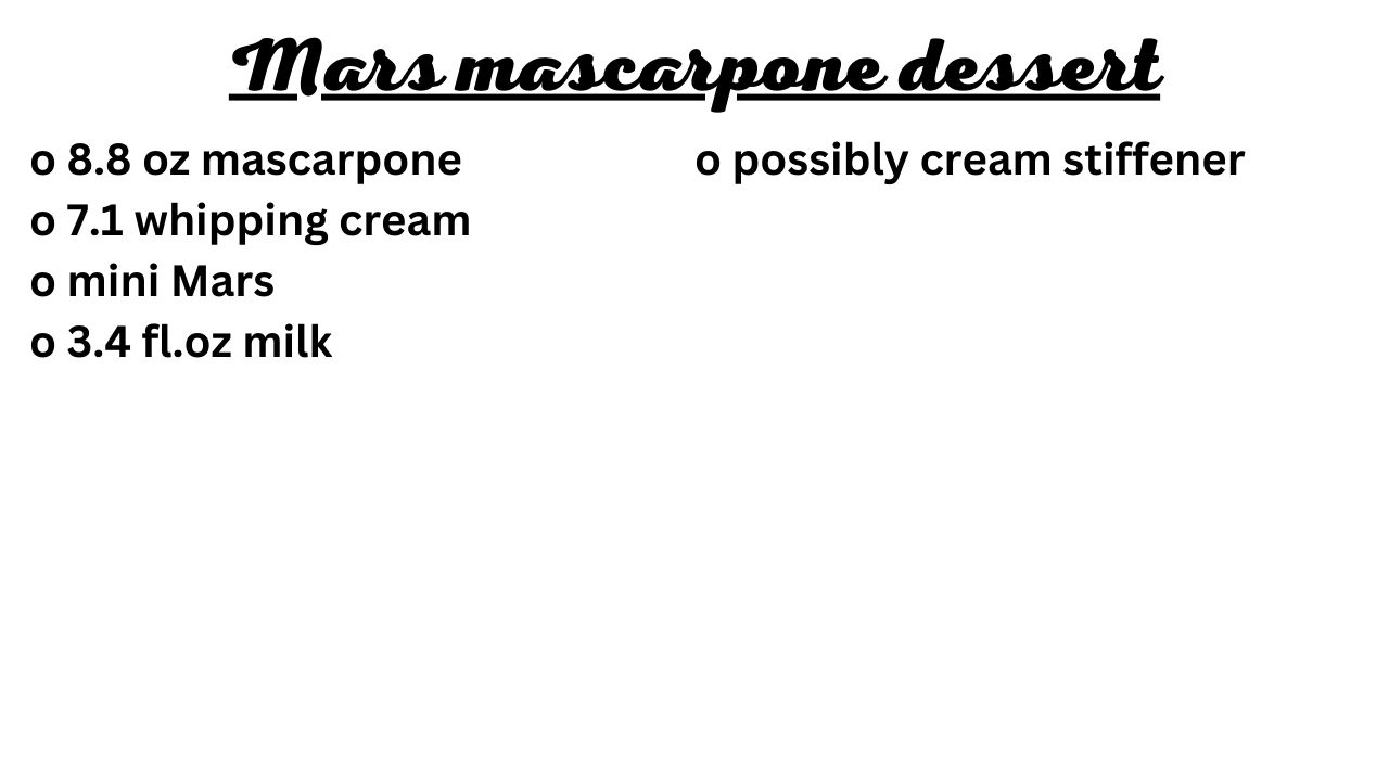2. Then add the mascarpone to the Mars mass and stir. Whip the whipped cream until stiff, possibly with cream stiffener, and stir into the mascarpone mixture.
