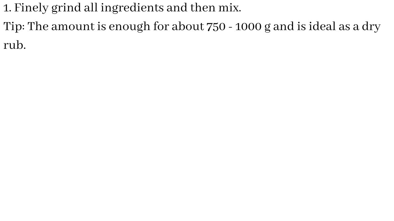 Tipp: Die Menge reicht für etwa 750 - 1000 g und ist optimal als Trockenrub.