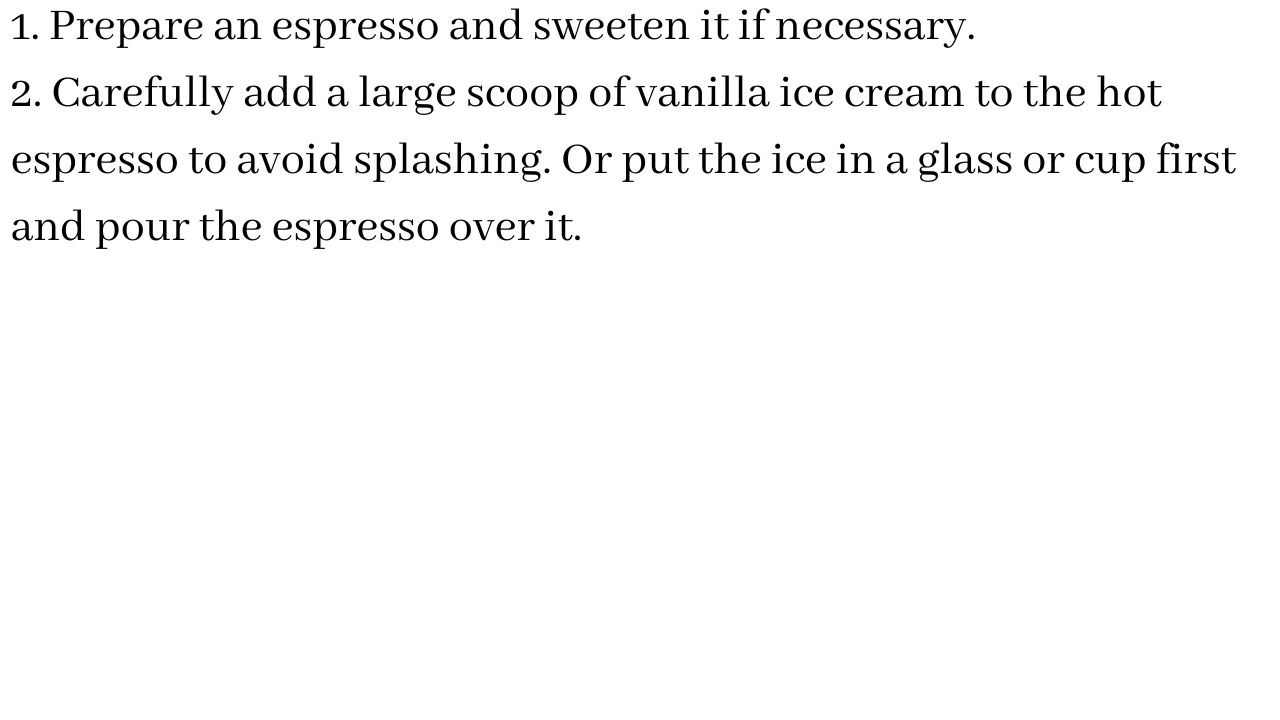 2. Carefully add a large scoop of vanilla ice cream to the hot espresso to avoid splashing. Or put the ice in a glass or cup first and pour the espresso over it.