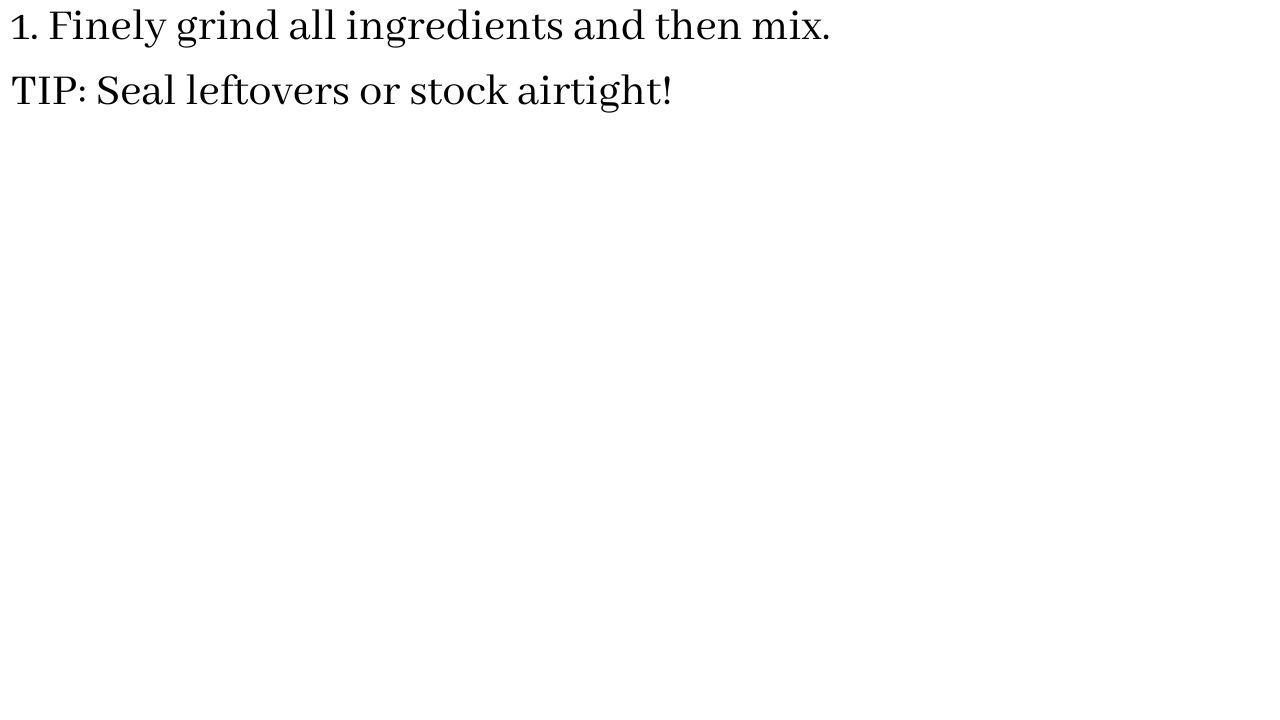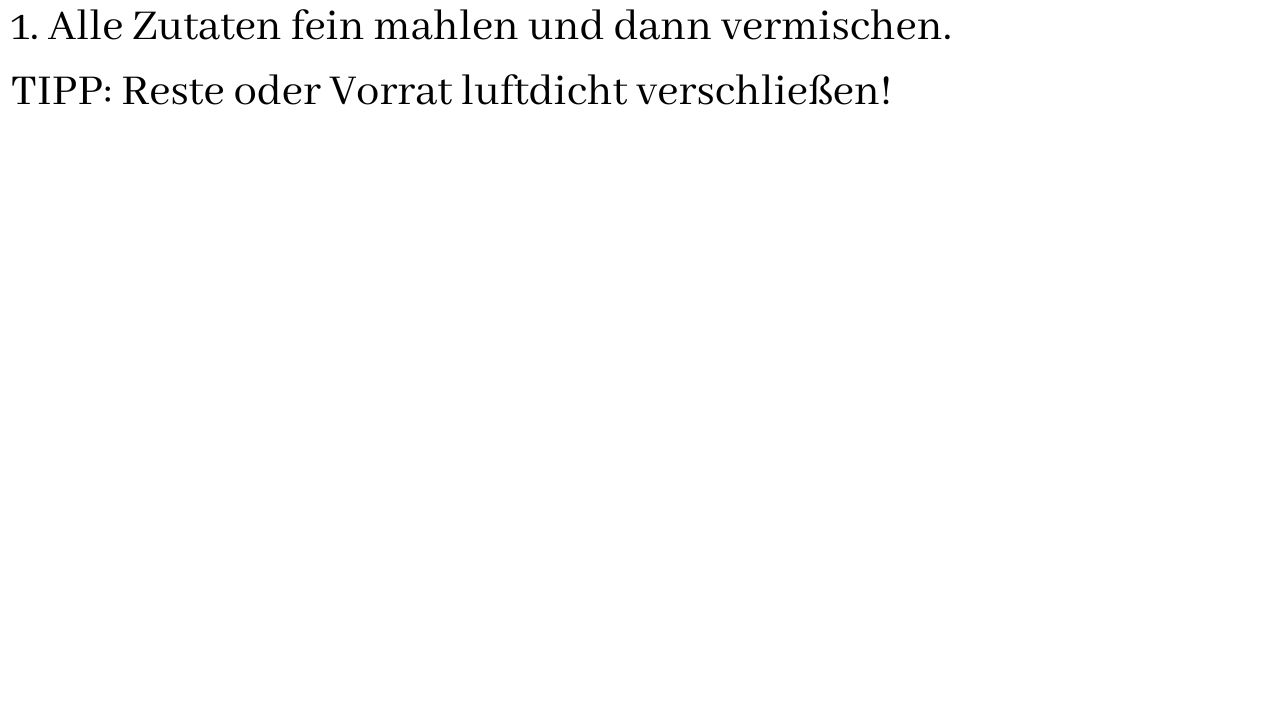 1. Alle Zutaten fein mahlen und dann vermischen.