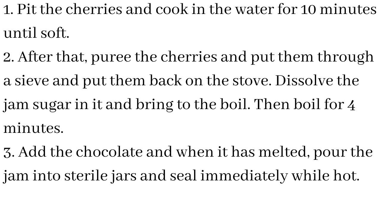 1. Pit the cherries and cook in the water for 10 minutes until soft.