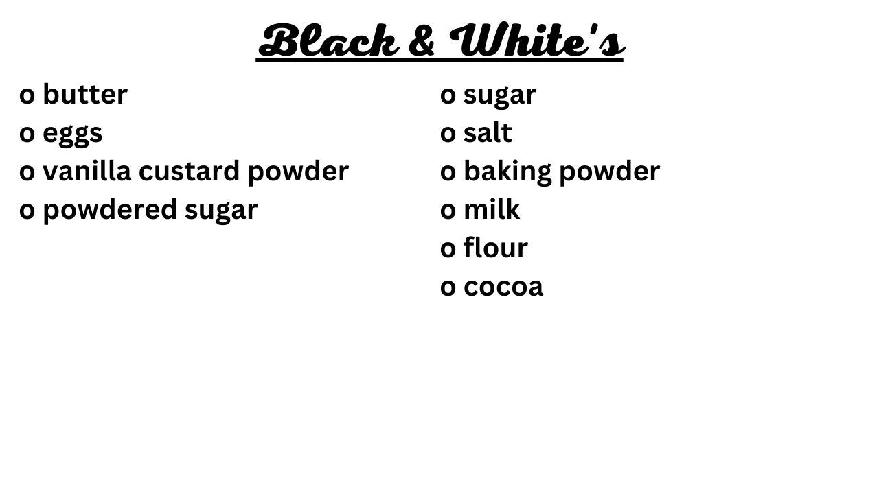 Ingredients for 15 Black & White's