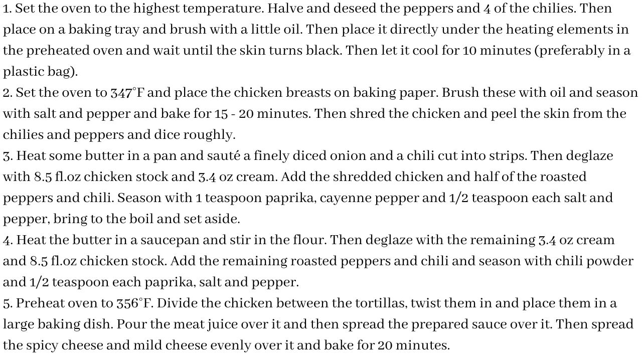 A warm welcome to my blog, dear food enthusiasts! Today I'm taking you on a culinary journey to a dish that not only enchants the taste buds, but also deserves a place of honor on every foodie bucket list: White Chicken Enchiladas. These heavenly enchiladas are undoubtedly one of the tastiest recipes in the world and will catapult your taste buds to new heights. The combination of tender chicken, creamy sauce and tangy cheese makes this dish an absolute culinary delight. If you're looking for a dish that will impress your family and friends alike, then you've come to the right place! Let's delve into the world of white chicken enchiladas together and find out why they belong on every big food bucket list.